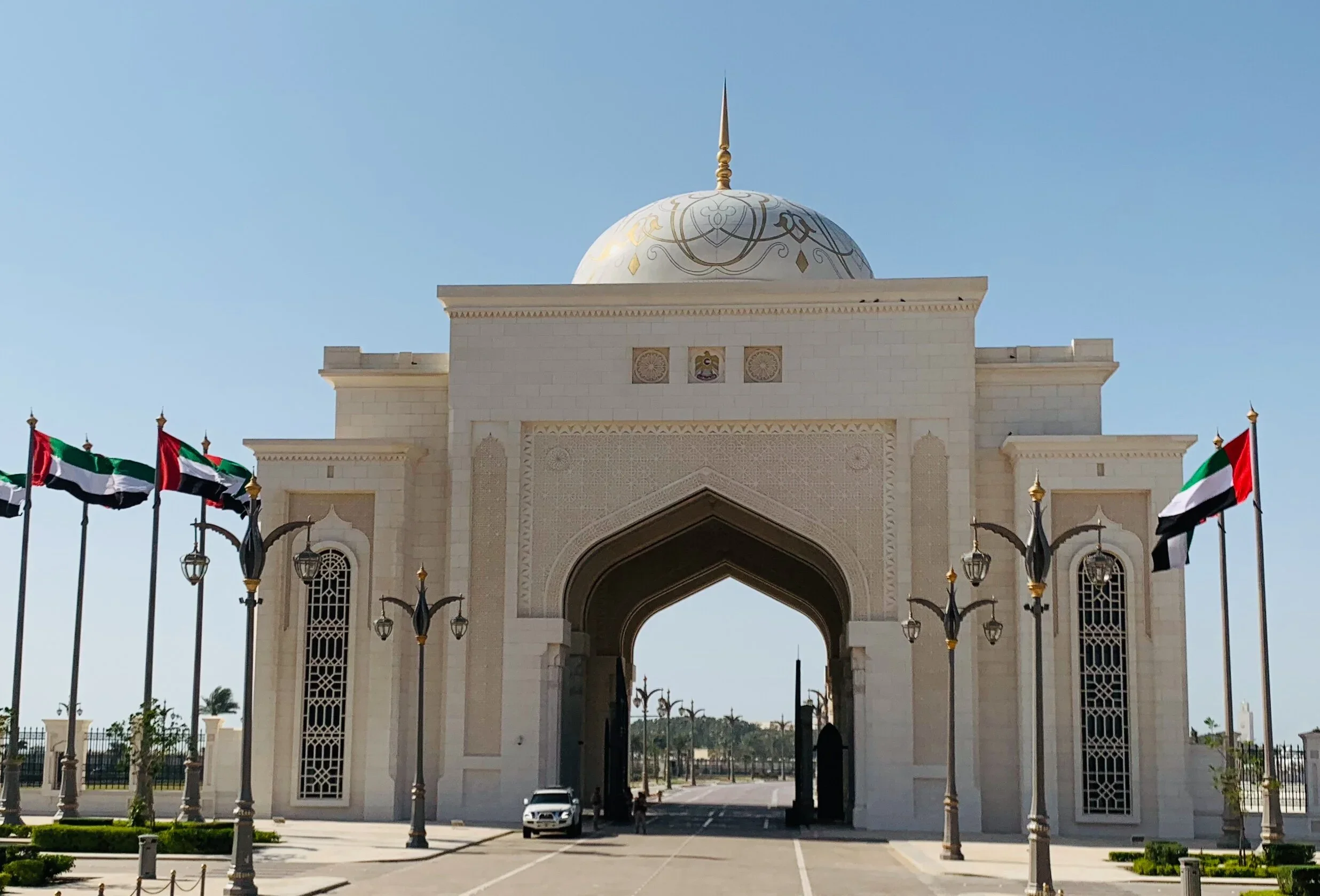 The imposing entrance to The Emirates Palace Hotel