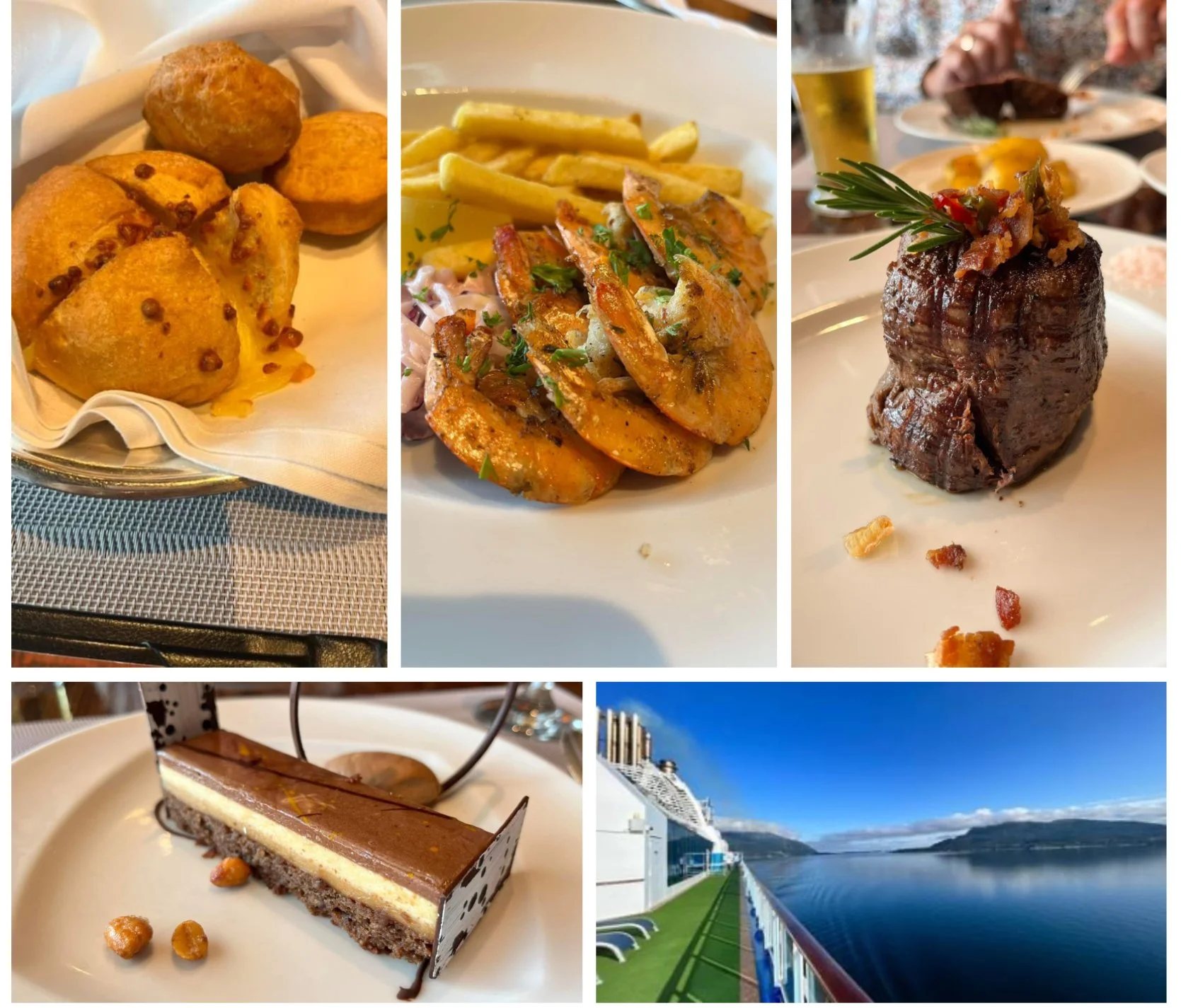 Back to the ship for a speedy change for dinner as we had a specialty reservation at the Speciality Restaurant - Bayou Cafe. we found Southern style cuisine, gumbo ya-ya’s jambalaya, butter melted lobster and dirty rice on the menu! I enjoyed Cajun easy peel shrimp, Carpetbaggers trinity smothered beef filet and a peanut butter slice cake for pudding!
