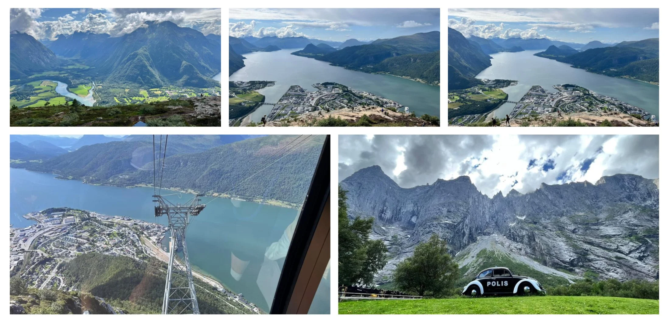 is close to the port so when we got back to the town centre we made a quick dash to the Romsdalsgondolen base station for a trip in a gondola to the best view point over the town. We chose a €54 return though you could opt to walk it one way up or down. Once at the top, 400m you could hike a further 350m for an even better view!