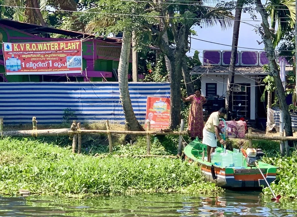 During the cruise we were provided with a wonderful meal which was freshly prepared and cooked in the onboard kitchen for us – fish, chicken, curries, vegetables, rice and fresh pineapple chunks. We spent almost two and a half hours on the water and covered a large area on a circular route, seeing temples and ayevedic spas on the river bank as well as some of the everyday life of people who live by the water.