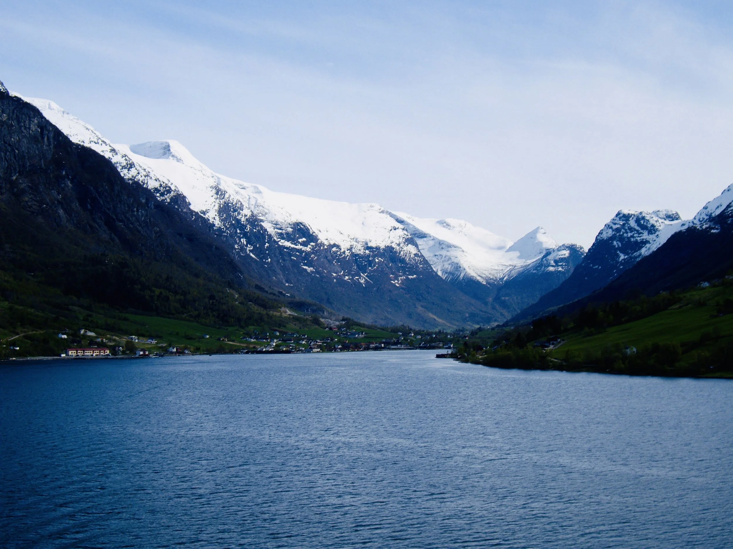 Olden is a tiny village at the end of the spectacular Nordfjord, and one of the most scenic stops on a Norwegian fjords cruise. Surrounded by waterfalls, mountains, and glaciers, Olden offers a true taste of “Norway you can only see from the water.” The sail-in is stunning — tiny hamlets with no road access, dramatic cliffs, and snow-capped peaks. If you can, be up on deck with a camera or enjoy breakfast on your balcony.